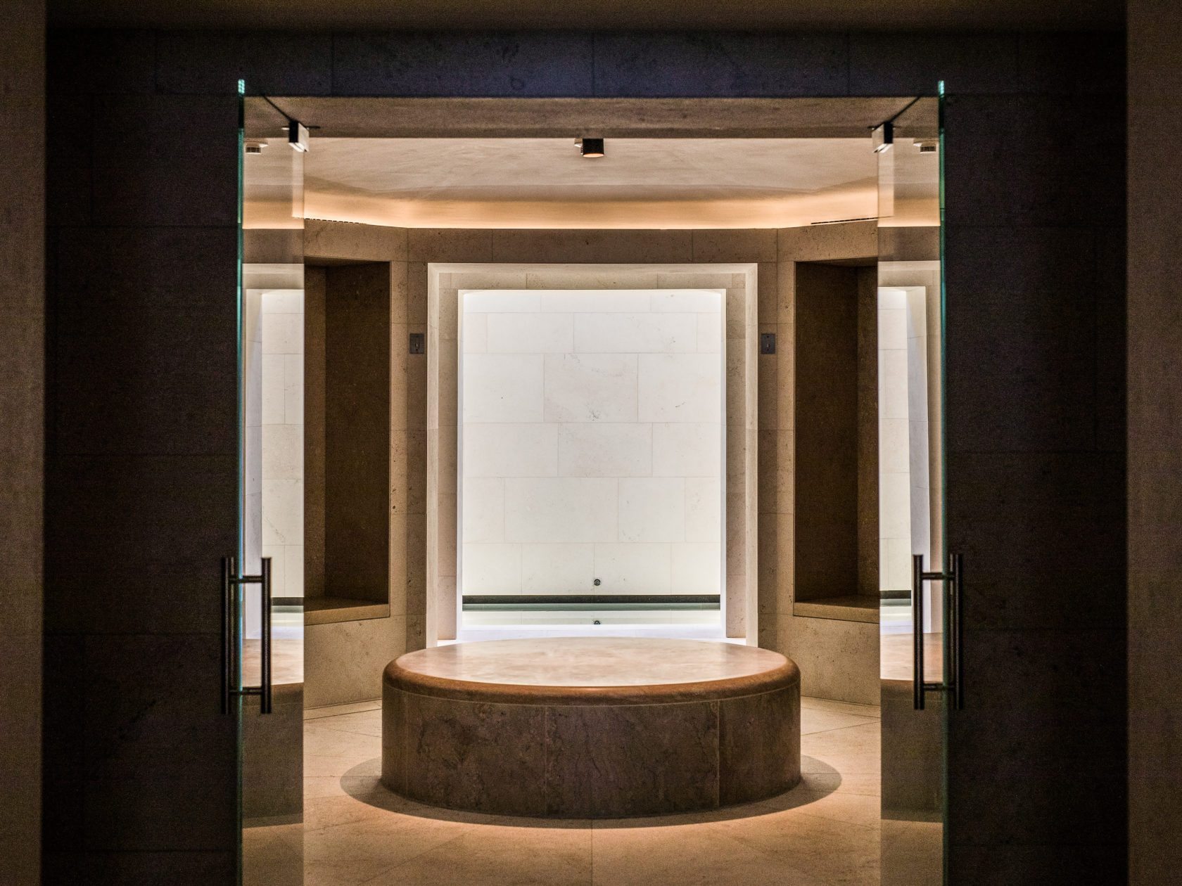 Wir haben uns daher von der Antike und ihrem Reichtum an Wissen und Erfahrung in Bezug auf Badepraktiken inspirieren lassen. Zusätzlich zu rituellen Abläufen haben wir uns auf die speziellen Qualitäten des Klimas, der Lichtführung und der bauphysikalischen Eigenschaften der Räume konzentriert. Die altertümlichen Hypokausten haben wir durch moderne, präzise kontrollierte Strahlungsheizungen in Wänden und Böden ersetzt. Aber wir setzen die moderne Technologie nur dazu ein, um die Qualität der antiken Bäder zu erreichen. Das komplette Badeerlebnis erschließt sich Ihnen dann, wenn Sie Temperatur und Feuchtigkeit ausnutzen und die Räume in der bewährten Abfolge benützen.